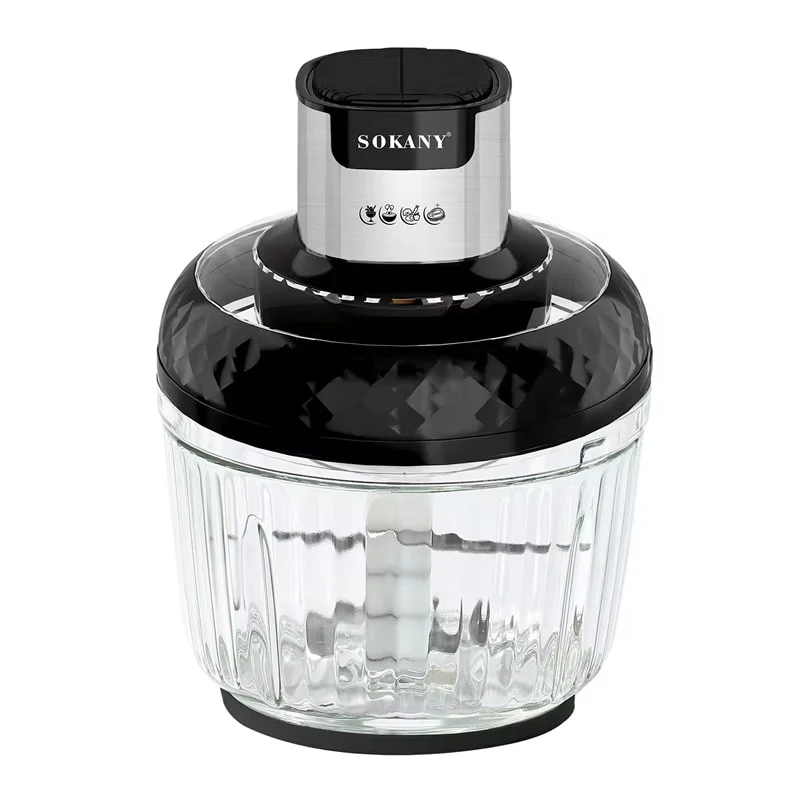Chopper Sokany SK-06008 — 800 W multifunctional chopper with two glass bowls (3 l and 0.5 l). Equipped with 2-speed mode, copper motor and stainless steel blades. Ideal for preparing meat, vegetables and baby purees. Practical “2-in-1” system for any culinary task.