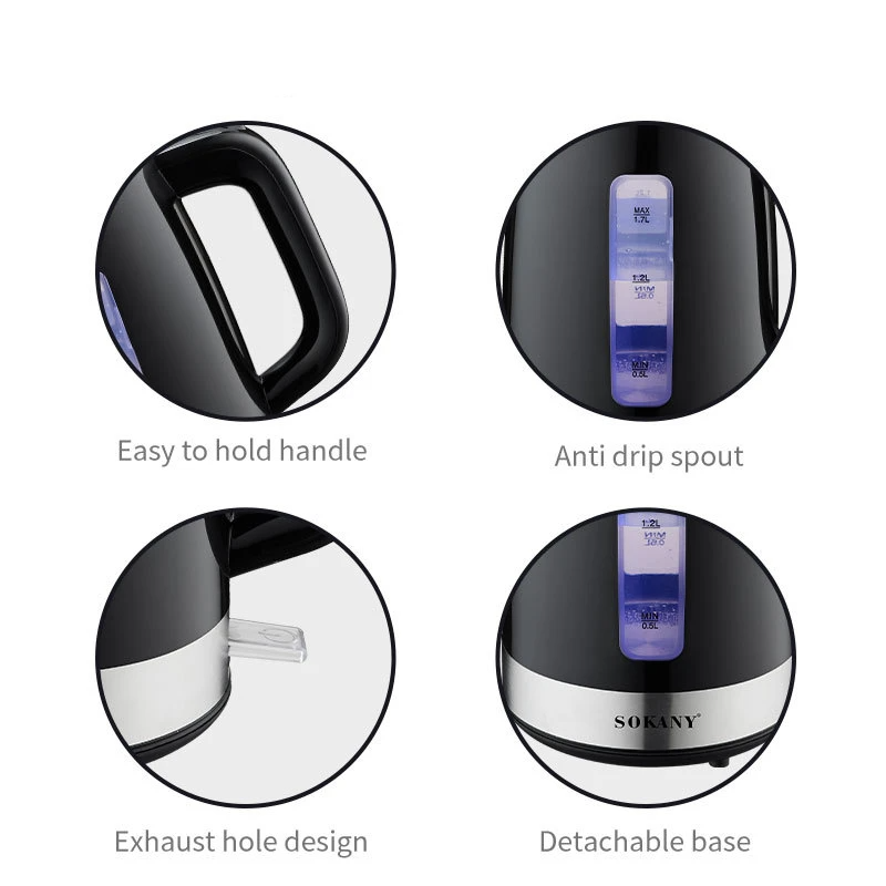 Prepare your favorite hot drinks quickly and easily with the Sokany SK-09006 electric kettle. This model combines high performance and modern safety standards.