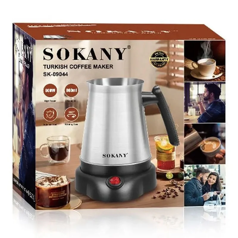 Turkish Coffee Maker Sokany SK-09044 — 600 W electric coffee maker with an 800 ml reservoir. Equipped with a closed stainless steel heating element and a luminous operation indicator. It is lightweight, compact and easy to clean. The best choice for quickly and comfortably preparing Turkish coffee.