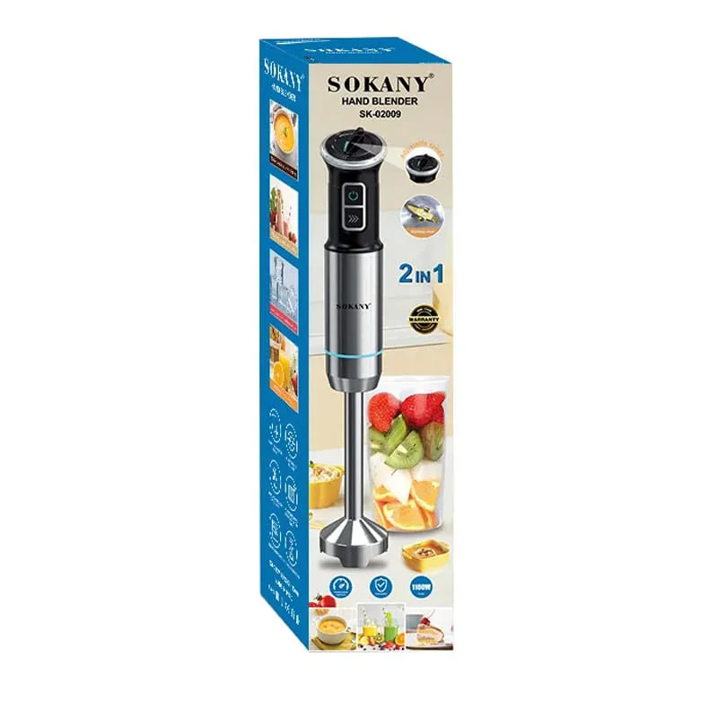 Ручной блендер Sokany SK-02009 (1100 Вт) — с регулятором скорости и турбо-режимом.