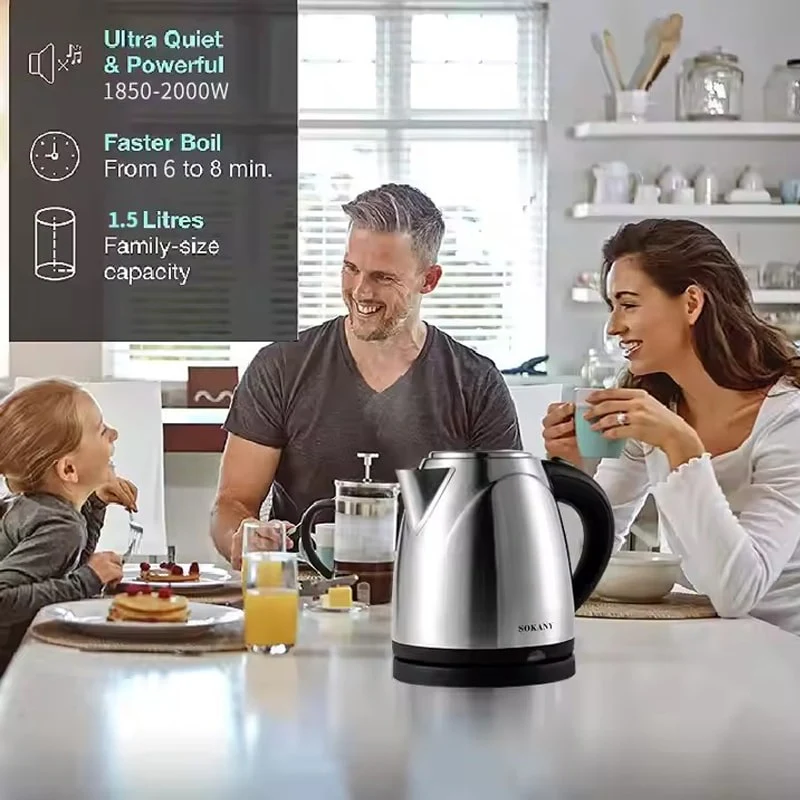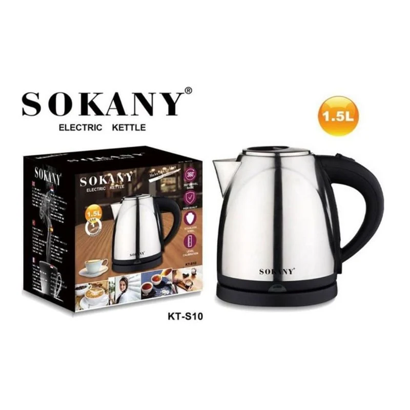 Электрический чайник Sokany KT-S10 — 2000 Вт, 1,5 л, нержавеющая сталь.