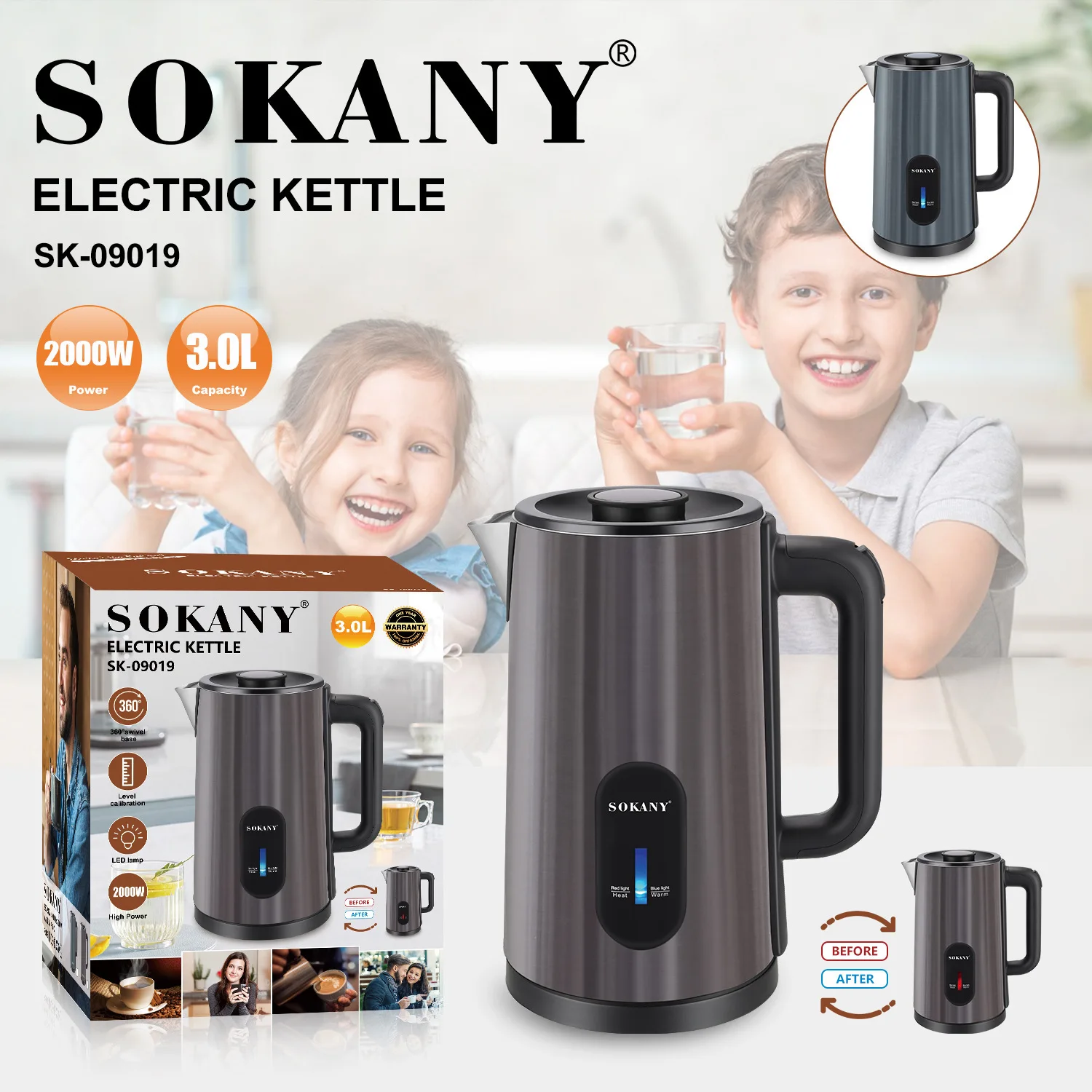 Электрический чайник Sokany SK-09019 из нержавеющей стали (3 литра) — 2000 Вт