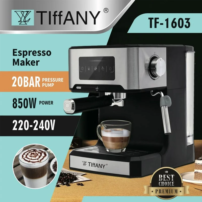 ესპრესოს აპარატი TIFFANY TF-1603 – 20 ბარი წნევა, სენსორული ეკრანი და თვითწმენდის ფუნქცია